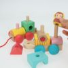 車体部分のつみきを組み替えて遊んだり、紐を引いて車体を走らせて遊べます。