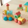 ジョージをのせて走らせよう!汽車の形をしたつみきのセットです。